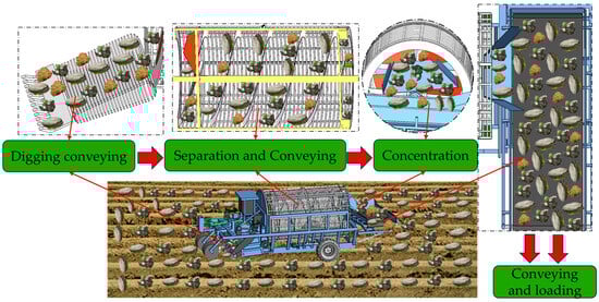 - Li, Y.; Hu, Z.; Gu, F.; Wang, B.; Fan, J.; Yang, H.; Wu, F. DEM-MBD Coupling Simulation and Analysis of the Working Process of Soil and Tuber Separation of a Potato Combine Harvester. Agronomy 2022, 12, 1734. [Google Scholar] [CrossRef]