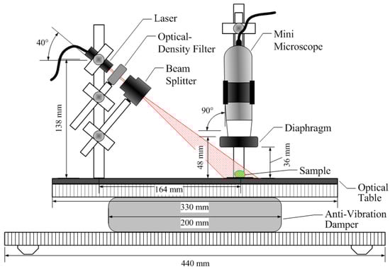 The hardware used to carry out the BSL in seeds can be seen in Figure 1 where the back-scattering configuration is presented. It consists of an optical table with an anti-vibration system, a solid-state laser (635 nm/3 mW) associated with a beam splitter, and an optical-density filter of 0.1. The CMOS camera (Dino-Lite US) is a mini microscope (Dino-Lite AM7013MZT, with 5 mega-pixels), with an adapted diaphragm with a 3 mm aperture. The mini microscope was connected to a computer where the images were assembled.