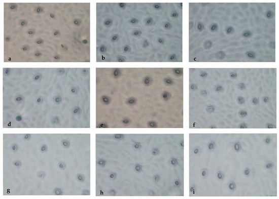 The stomata observation between diploid and polyploid C. lansium of WH (40×). Note: (a) CK (2n = 2x = 18); (b–h) W1–W7 (2n = 3x = 27); (i) W8 (2n = 4x = 36). Bar = 20 μm.