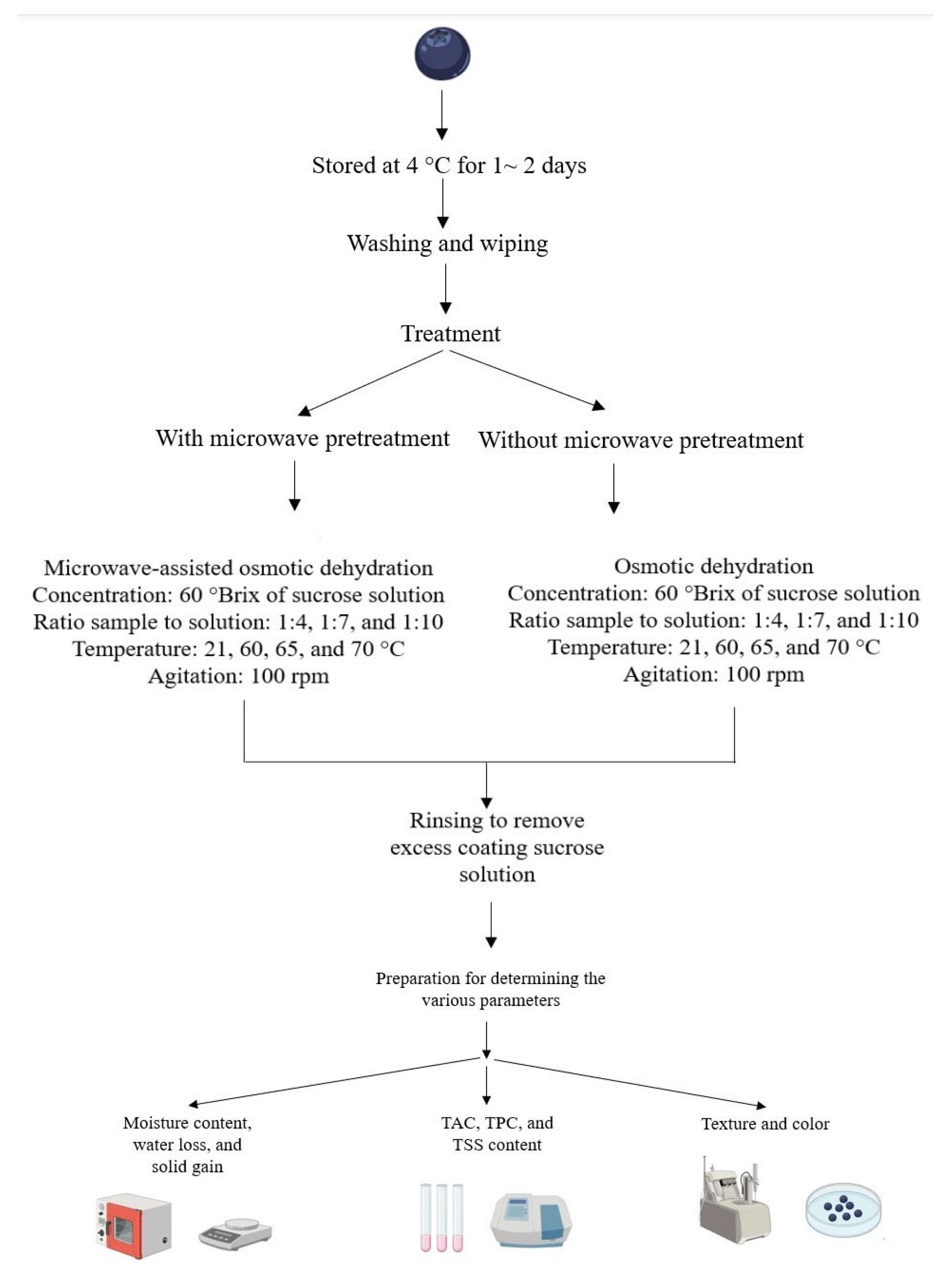 - Norouzi, S.; Orsat, V.; Yeasmen, N.; Dumont, M.-J. Osmotic Dehydration of Waxy Skinned Berries—A Review. Dry. Technol. 2024, 42, 1270–1294. [Google Scholar] [CrossRef]