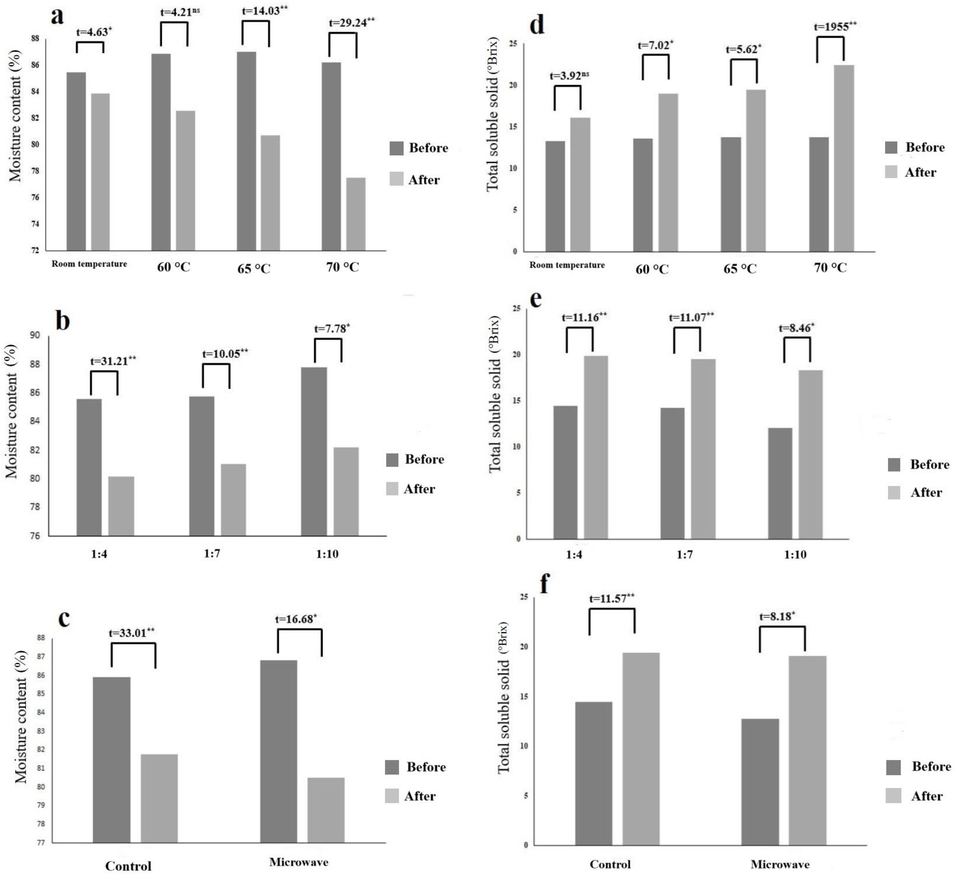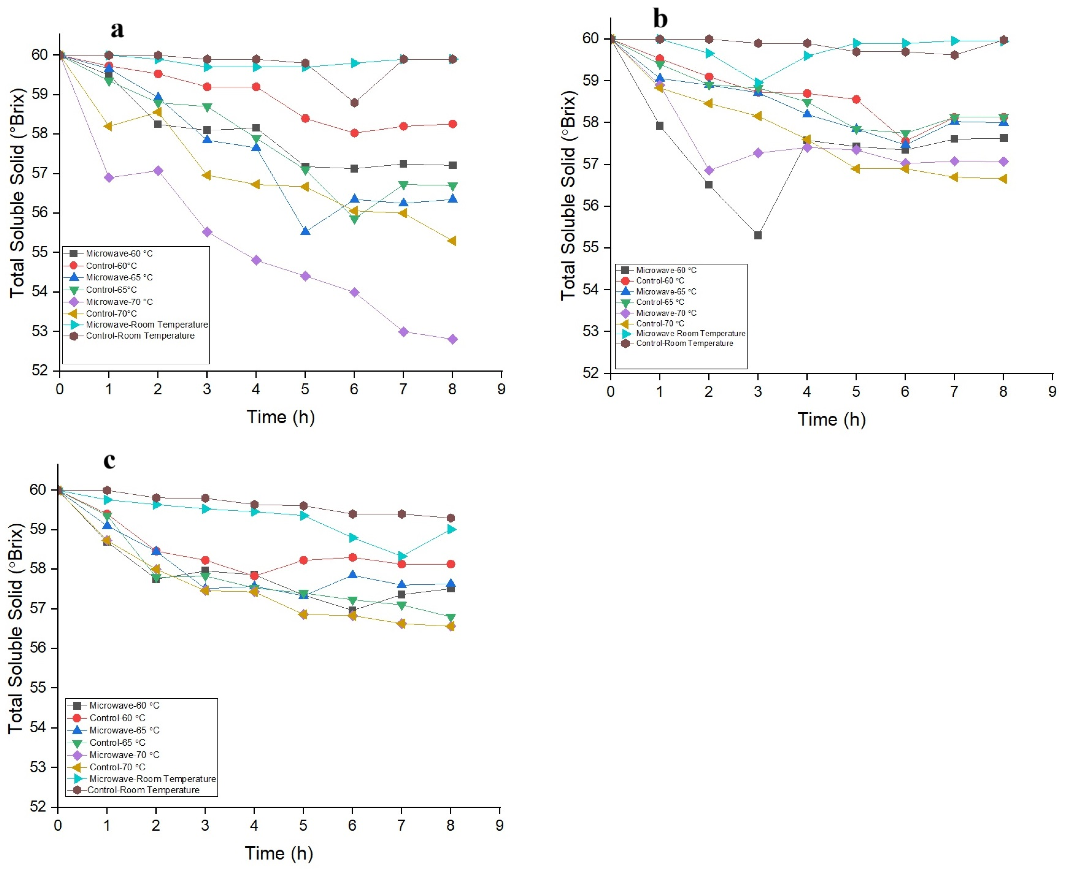 3.3. Moisture Content and Total Soluble Solid of Osmotically Dehydrated Blueberry