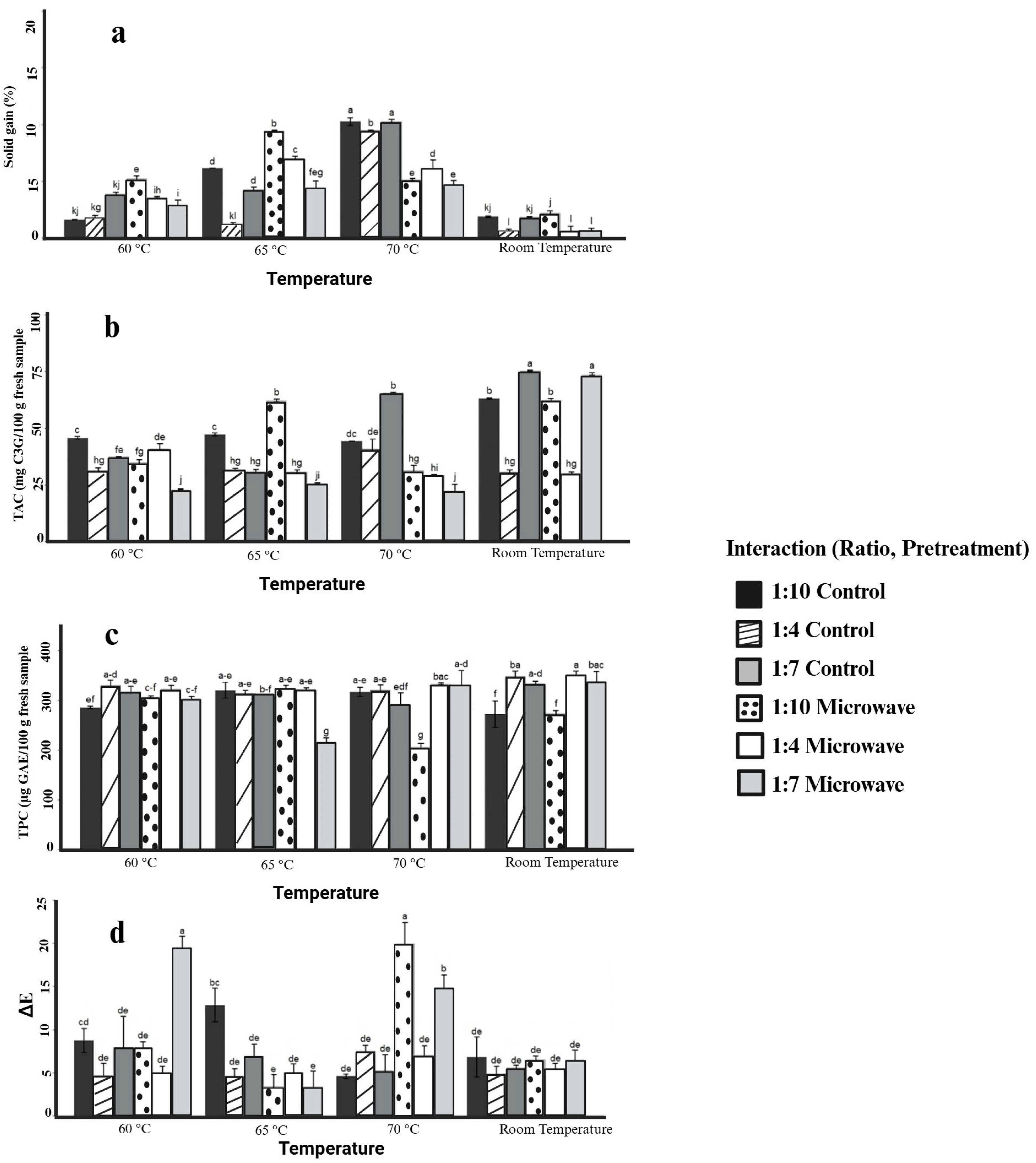 | 70 °C × 1:4 × Control | 6.44 * | 35.92 ** |