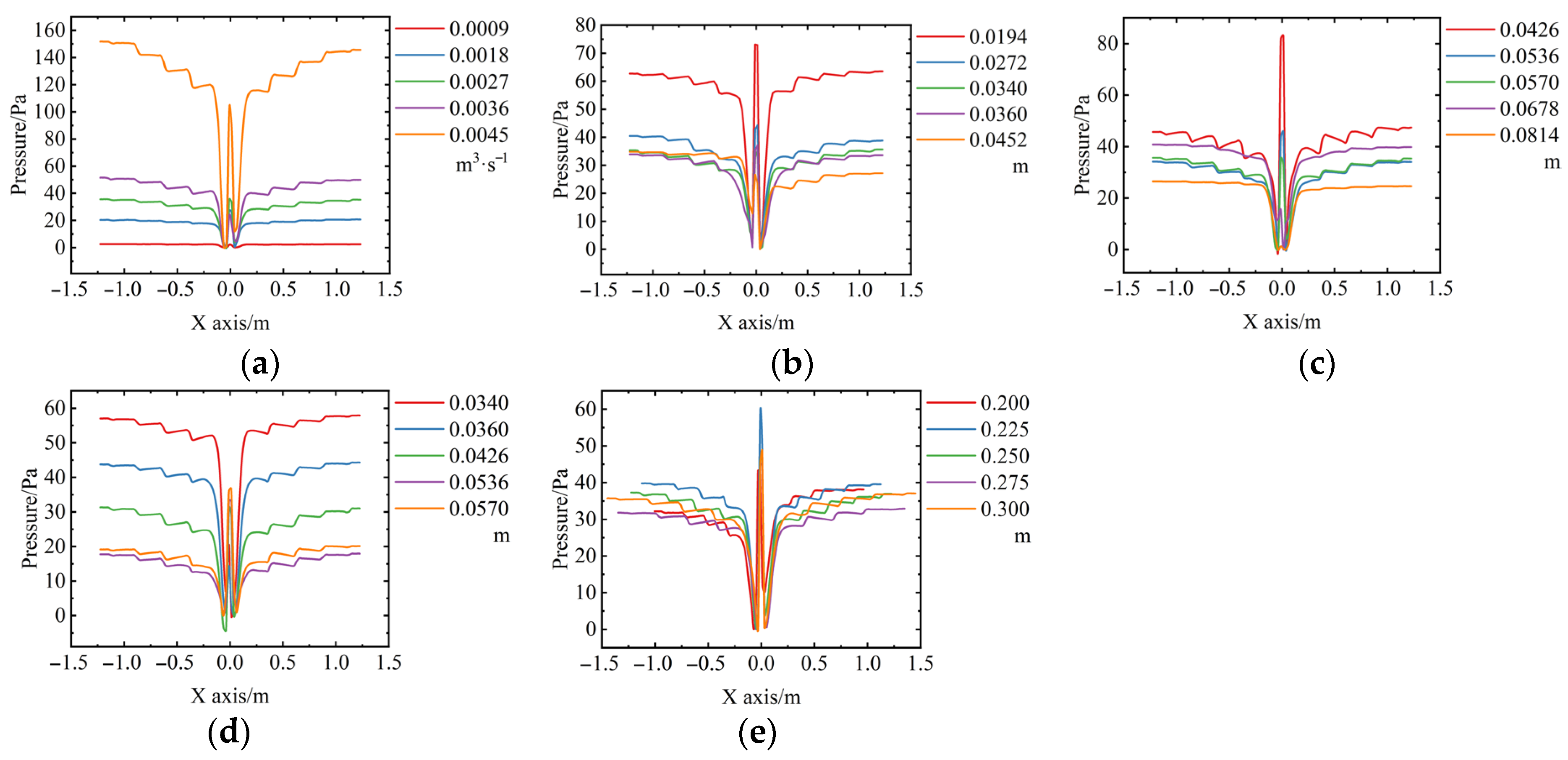 3.1.1. Influence of Q on the Main Pipe’s Pressure Loss P