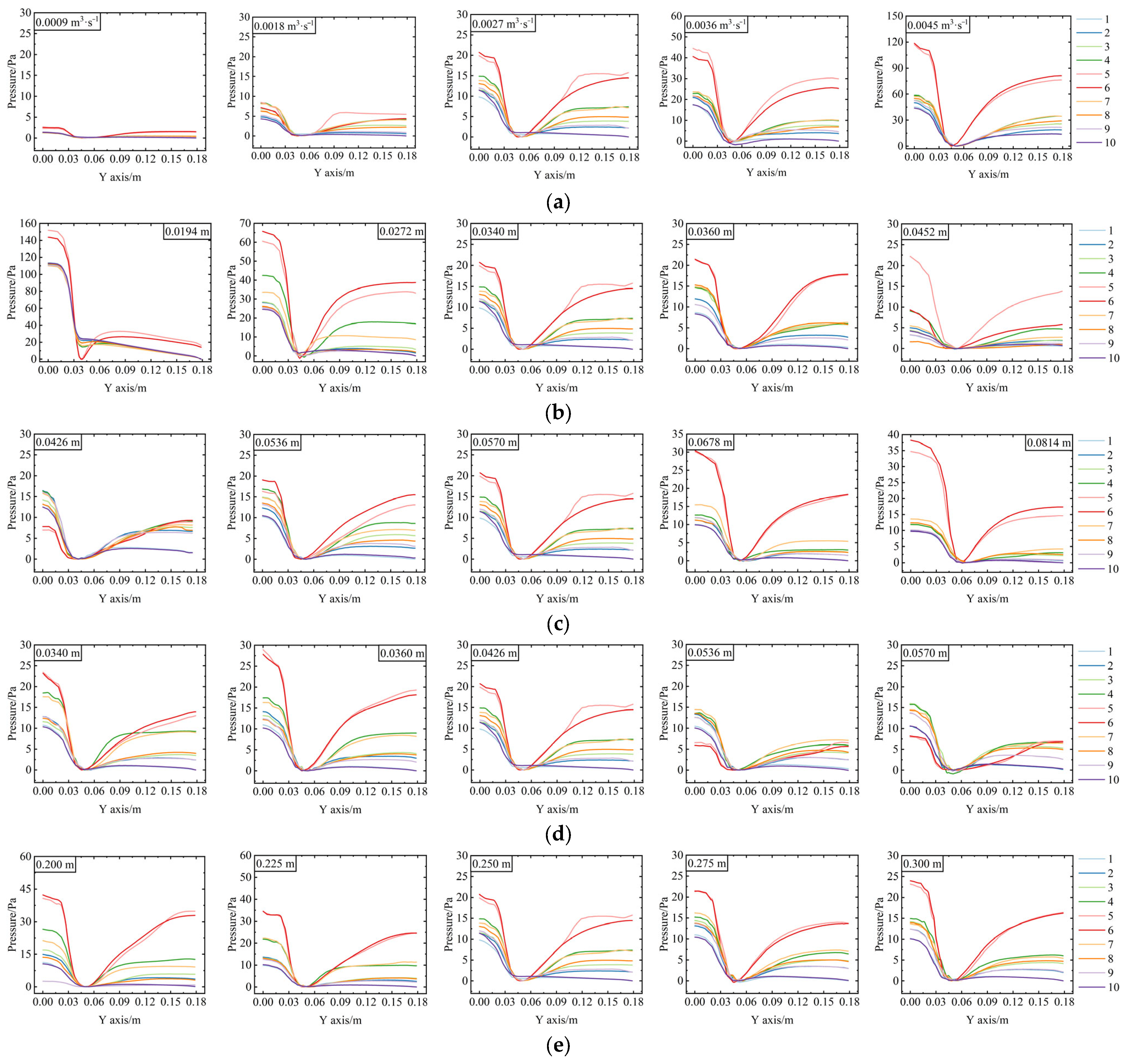 D/m | Q = 0.0027 m3·s−1, d = 0.034 m, δ = 0.25 m, γ = 0.057 m; 1715.38, 2.5, 0.57 | δ = 0.3 m, 3, Other Parts Are Identical to the Table on the Left | ||||
