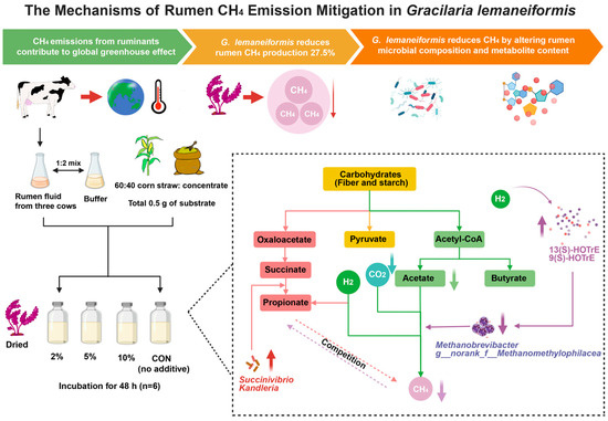 The mechanisms of CH4 emission mitigation by G. lemaneiformis in an in vitro study.