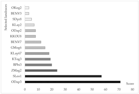With regard to the different groups of value chain participants, the number of selected landraces varied notably from four to ten. Seven landraces were selected by producers and breeders, four by processors, and six by agricultural extension agents. Up to ten landraces were selected by consumers (Table 8). Concordances in the preferences of the participants for certain landraces were observed. For example, ODap3 was the most preferred landrace for all the participants except for agricultural extension agents, while SLeo1 was the second most preferred for them, except for producers.