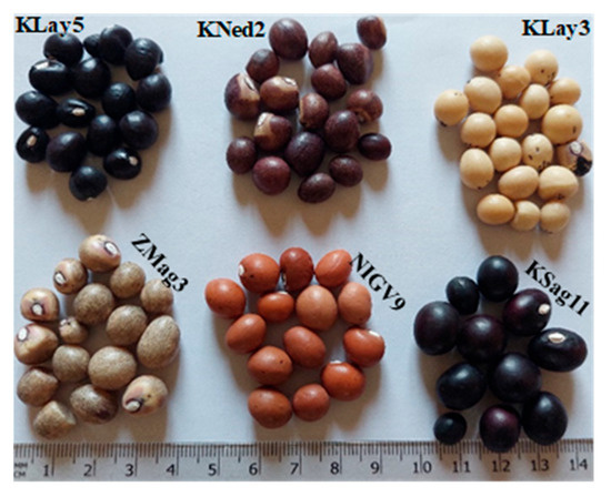 Out of 20 landraces, six were not selected (Figure 9): KLay3, KLay5, KNed2, KSag11, NIGV9 and ZMag3. These are black, red, or cream-coloured seeds with black spots.