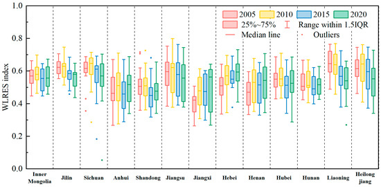 Box plots of WLRES for provinces in the MGPAs from 2005 to 2020.