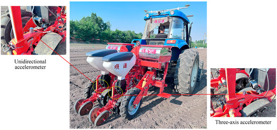 Multi-source vibration tests of the no-tillage planter under different operating conditions were conducted at the Conservation Tillage Experimental Base in Xing’an League, Inner Mongolia (122.15° E, 46.07° N), as shown in