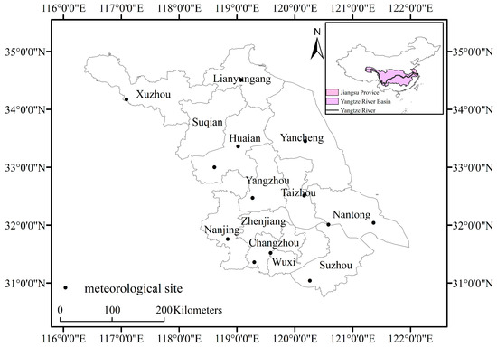 Figure 1. Spatial distribution of meteorological stations in Jiangsu Province. - (2)