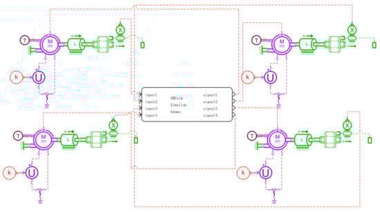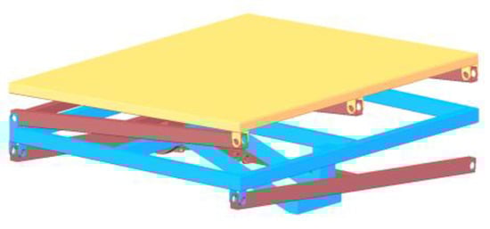 In the electromechanical leveling system, four servo-electric cylinders serve as the actuation mechanism-two are designated for lateral leveling and two for longitudinal leveling. Geometrically accurate models have been constructed and hinge-connected between: the body frame and intermediate frame; as well as the intermediate frame and chassis frame (Figure 8). The extension and retraction capabilities of these cylinders facilitate precise control over both the posture of the frame and the horizontality of the work surface.