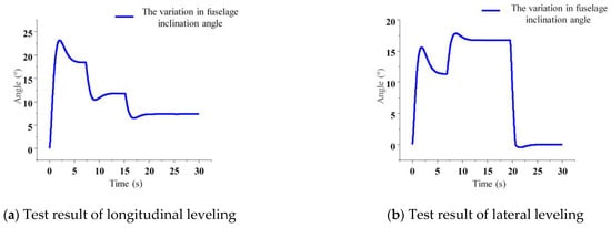 (1) Simulation results indicate that during 25° longitudinal and 20° lateral leveling, ASMC significantly exceeds the performance of PID control. Specifically, the longitudinal stabilization time is reduced to 2.47 s, representing an improvement of 1.12 s; the lateral stabilization time decreases to 2.39 s, reflecting a reduction of 0.95 s; and longitudinal inclination overshoot is diminished by 2.21°, while lateral overshoot decreases by 1.86°. Additionally, both longitudinal and lateral leveling velocities are enhanced by factors of 1.5 and 1.3 respectively; moreover, reductions in longitudinal and lateral angular accelerations are observed at rates of 15.8% and 17.1%, respectively. These findings substantiate the superiority of ASMC over PID in terms of response speed, control precision, and dynamic stability.