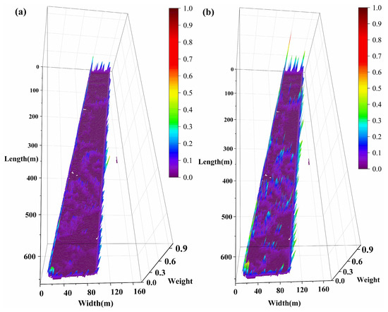 In contrast, Kriging, leveraging spatial autocorrelation, achieved higher local prediction accuracy (RMSE = 0.2134, R2= 0.6910). However, its overall performance was slightly inferior to that of the integrated method in areas distant from observed sample points because of limitations in modeling spatial variability. The deep learning models 3D-CNN and GAT achieved RMSE values of approximately 0.22 and R2 values near 0.6. They demonstrated strong capabilities in feature extraction and complex pattern learning from high-dimensional data, particularly in capturing nonlinear relationships in hyperspectral data. However, their prediction accuracy remained limited in some areas with sparse vegetation and weak feature variation. Traditional machine learning models (SVM and RF) achieved R2 values below 0.53 and RMSE values of approximately 0.25. These results indicate their limited ability to exploit spatial correlation and high-dimensional features, as well as an incomplete capture of potential data patterns. As a result, their prediction performance was inferior to that of the deep learning and geostatistical methods.
