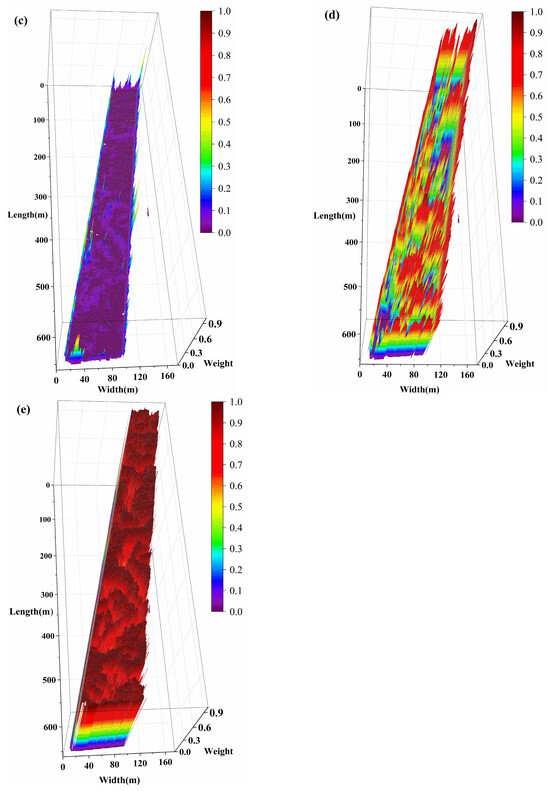 To investigate the impact of different model combinations on prediction accuracy, we selected five models: SVM (denoted as 1), RF (denoted as 2), 3D-CNN (denoted as 3), GAT (denoted as 4), and Kriging interpolation (denoted as 5). These models were combined in various configurations and integrated using the Helmert variance component estimation method to obtain both weighted median and weighted mean predictions. Specifically, five combinations were tested: the full combination (1–5), deep learning + Kriging (3–5), 3D-CNN + GAT (34), 3D-CNN + Kriging (35), and GAT + Kriging (45). The prediction performance of each combination is summarized in Table 6. The results show that the full combination (1–5) yielded the highest accuracy, with an RMSE of 0.1978 and R2 of 0.7609 for the weighted mean, and an RMSE of 0.1978 and R2 of 0.7597 for the weighted median.