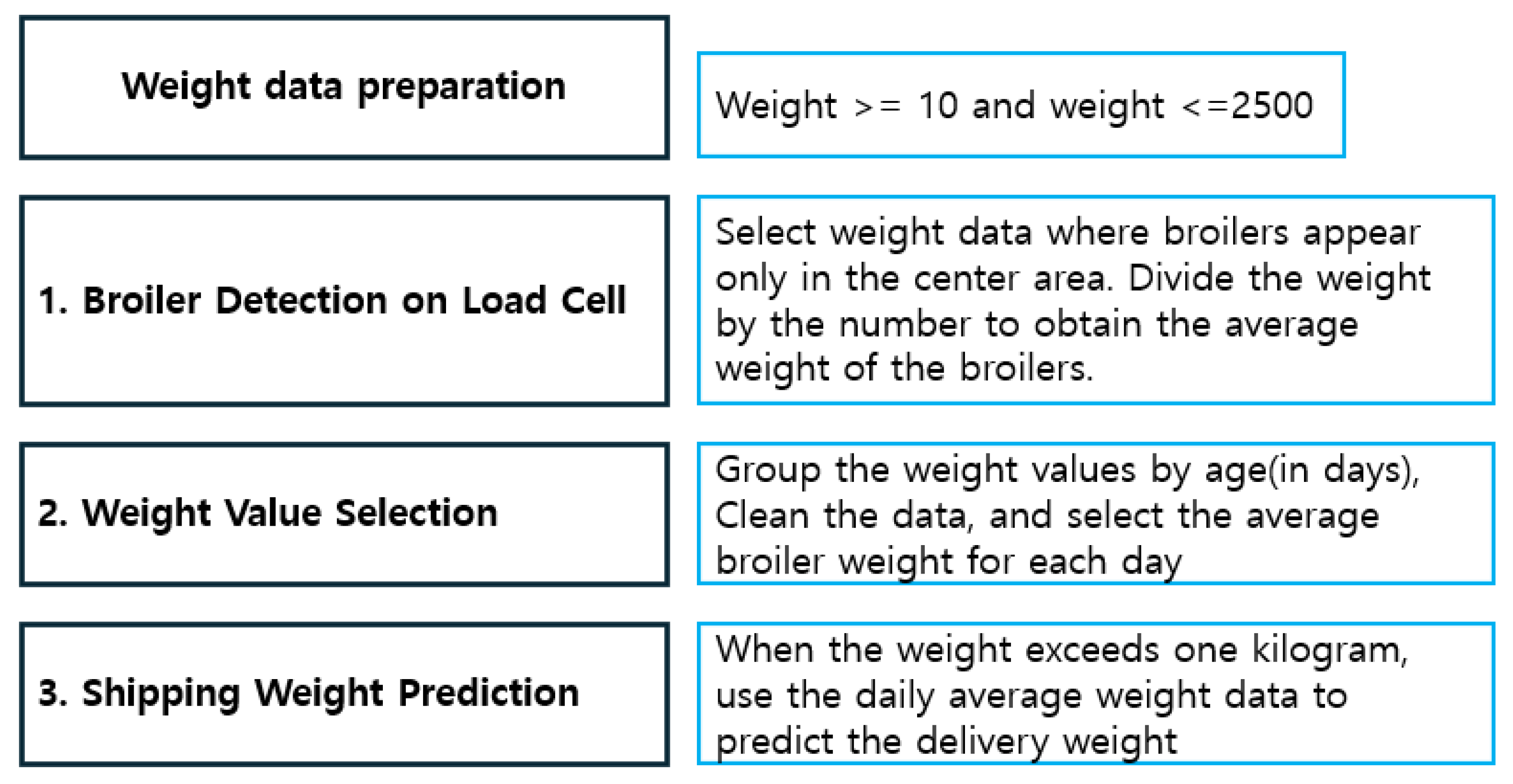 Yang, L.; Song, J. Enhanced Prediction of Broiler Shipment Weight Using Vision-Assisted Load Cell Analysis. Agriculture 2025, 15, 1947. https://doi.org/10.3390/agriculture15181947