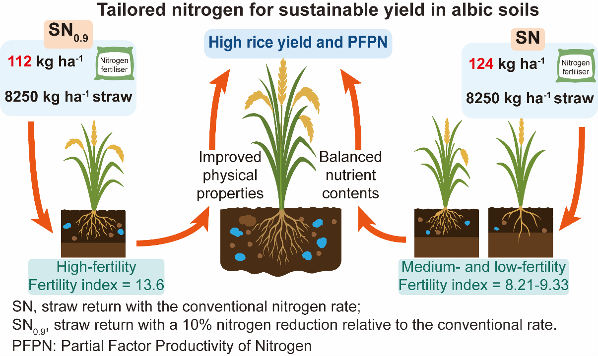 Wang Q, Gao X, Wu B, Li J, Liu X, Zou J, Meng Q. Fertility-Based Nitrogen Management Strategies Combined with Straw Return Enhance Rice Yield and Soil Quality in Albic Soils. Agriculture. 2025; 15(18):1964. https://doi.org/10.3390/agriculture15181964