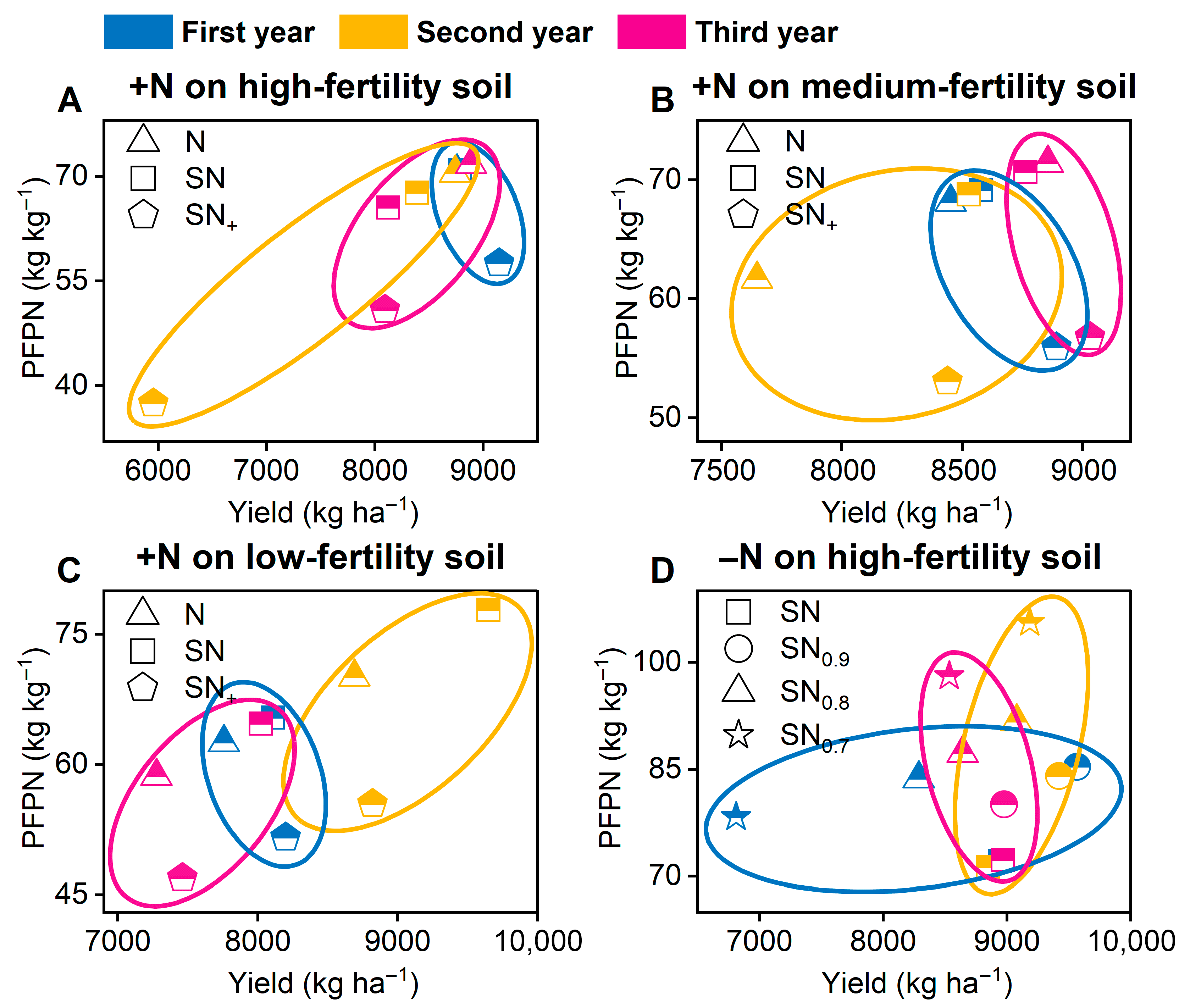 2.3.4. Partial Factor Productivity of Nitrogen (PFPN)