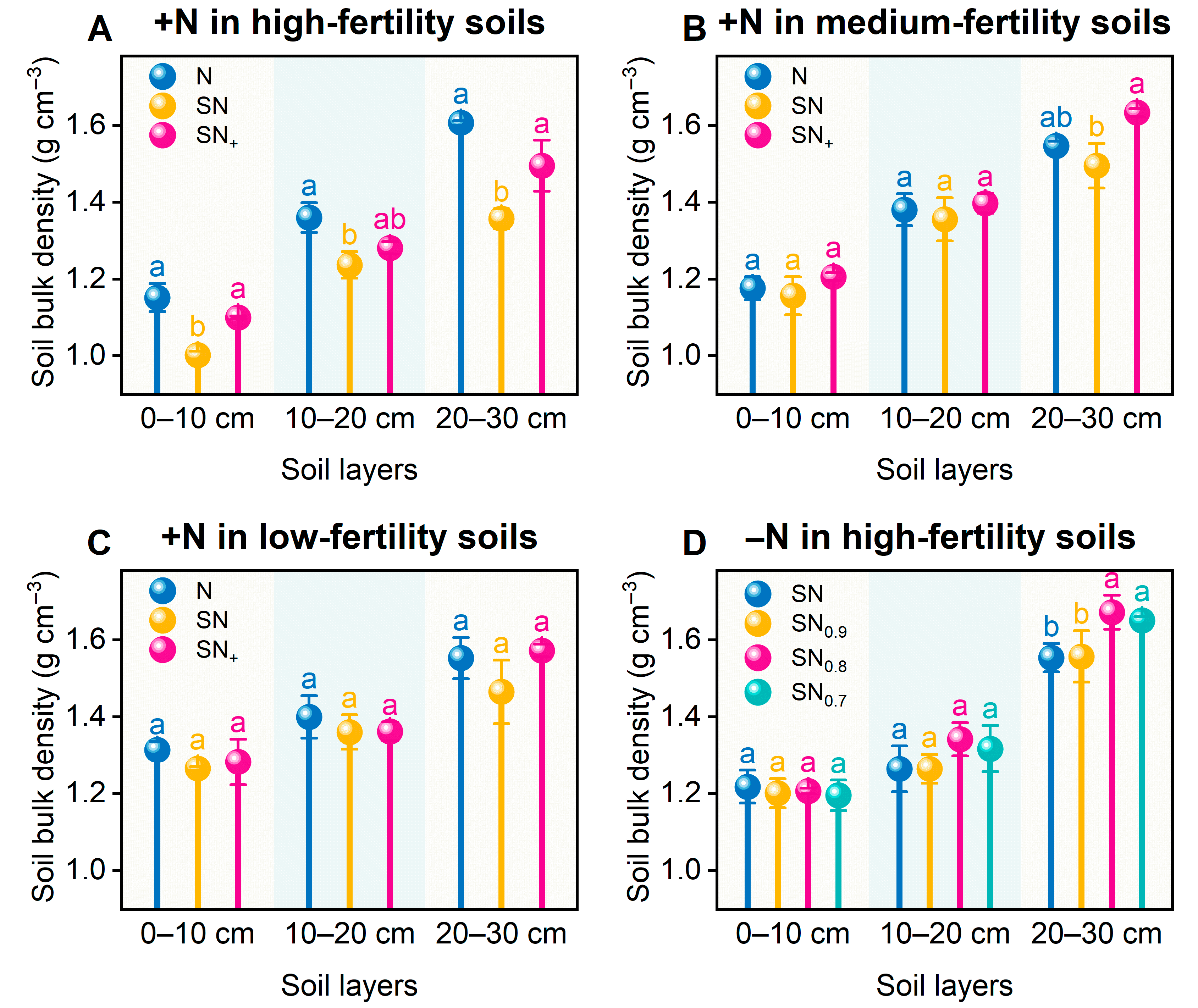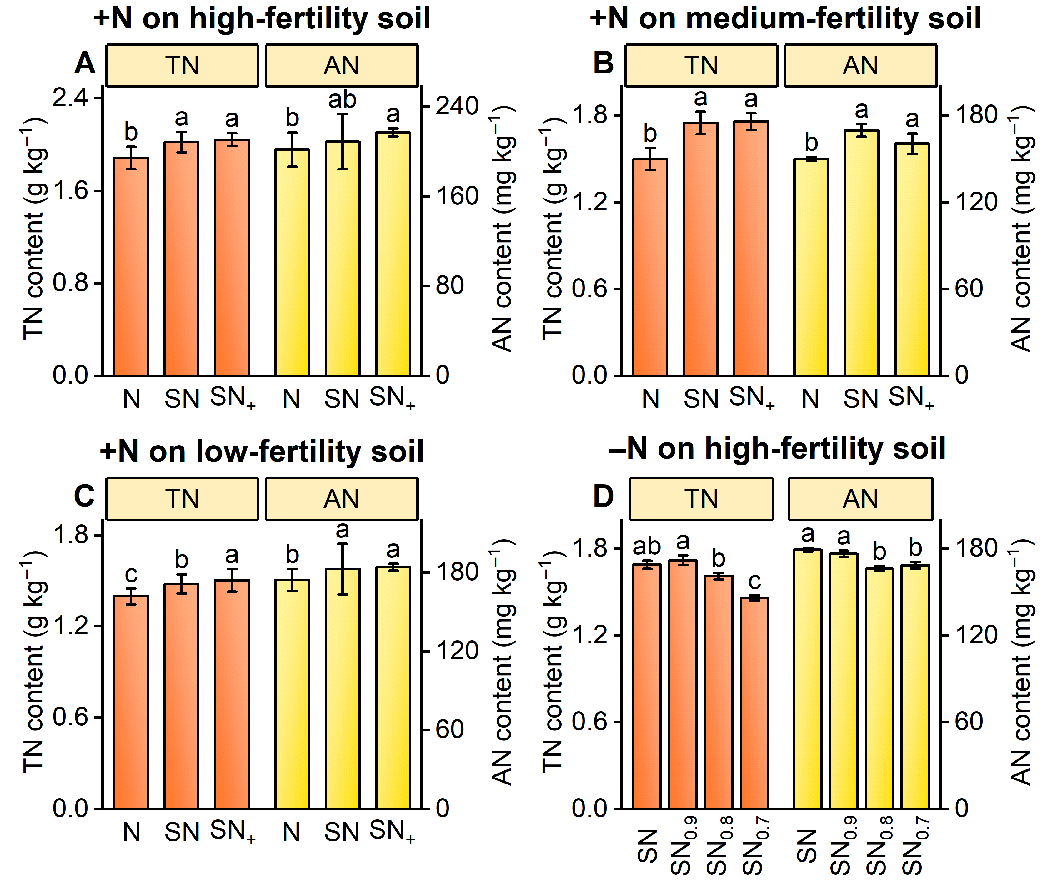 - Meng, X.; Zhang, X.; Li, Y.; Jiao, Y.; Fan, L.; Jiang, Y.; Qu, C.; Filimonenko, E.; Jiang, Y.; Tian, X.; et al. Nitrogen fertilizer builds soil organic carbon under straw return mainly via microbial necromass formation. Soil Biol. Biochem. 2024, 188, 109223. [Google Scholar] [CrossRef]