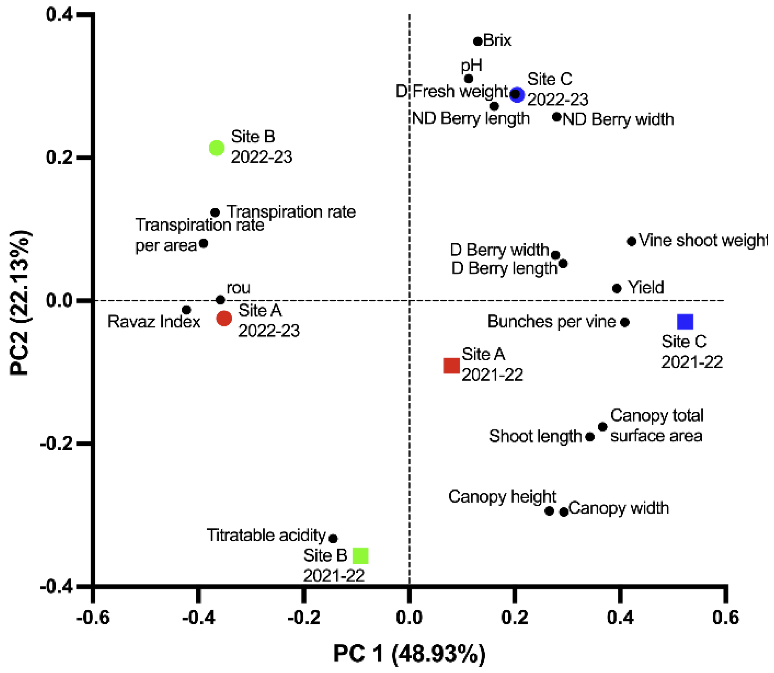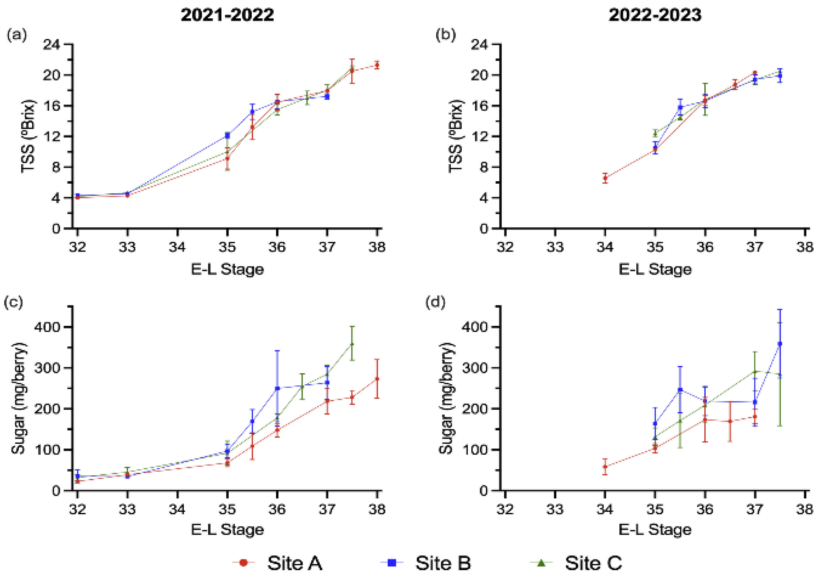 2022–2023 | Site A | 12.8 ± 1.4 b | 12.0 ± 1.4 | 1.14 ± 0.33 c | 10.6 ± 2.3 d | 10.4 ± 2.2 c |