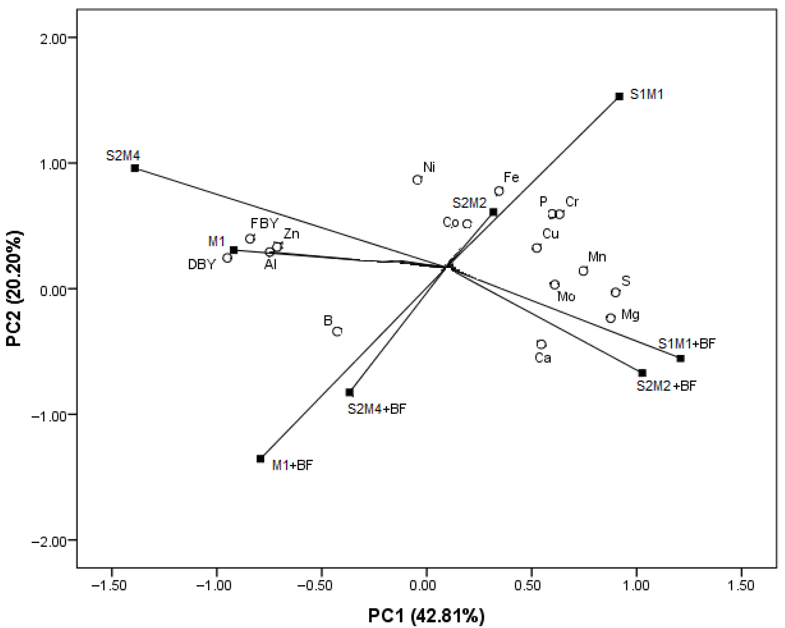 S1M1 | 1.08 ns | 1.76 a | 3.28 a | 1.42 a | 1.85 b | 15.51 b | 1.84 c | 25.40 c | 46.81 b | 0.07 ns | 2.34 b | 5.83 ns | 21.37 b | 0.15 b |