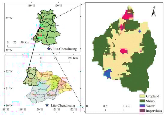 Chenzhuang (Figure 1), located at the southern end of the Maoshan mountain range on the border between Zhenjiang City and Changzhou City, is the origin and watershed of the western Taihu Lake water system and the eastern branch of the Qinhuai River water system. It is situated in the upstream water conservation area of the Taihu Lake basin, making its geographical location unique. The region has intense agricultural activities, with the application of chemical fertilizers dramatically increasing in recent years, leading to a TN exceedance rate of up to 83% in the basin, highlighting significant non-point source nitrogen and phosphorus pollution from agriculture, which poses a serious threat to the eutrophication of downstream waters [36].