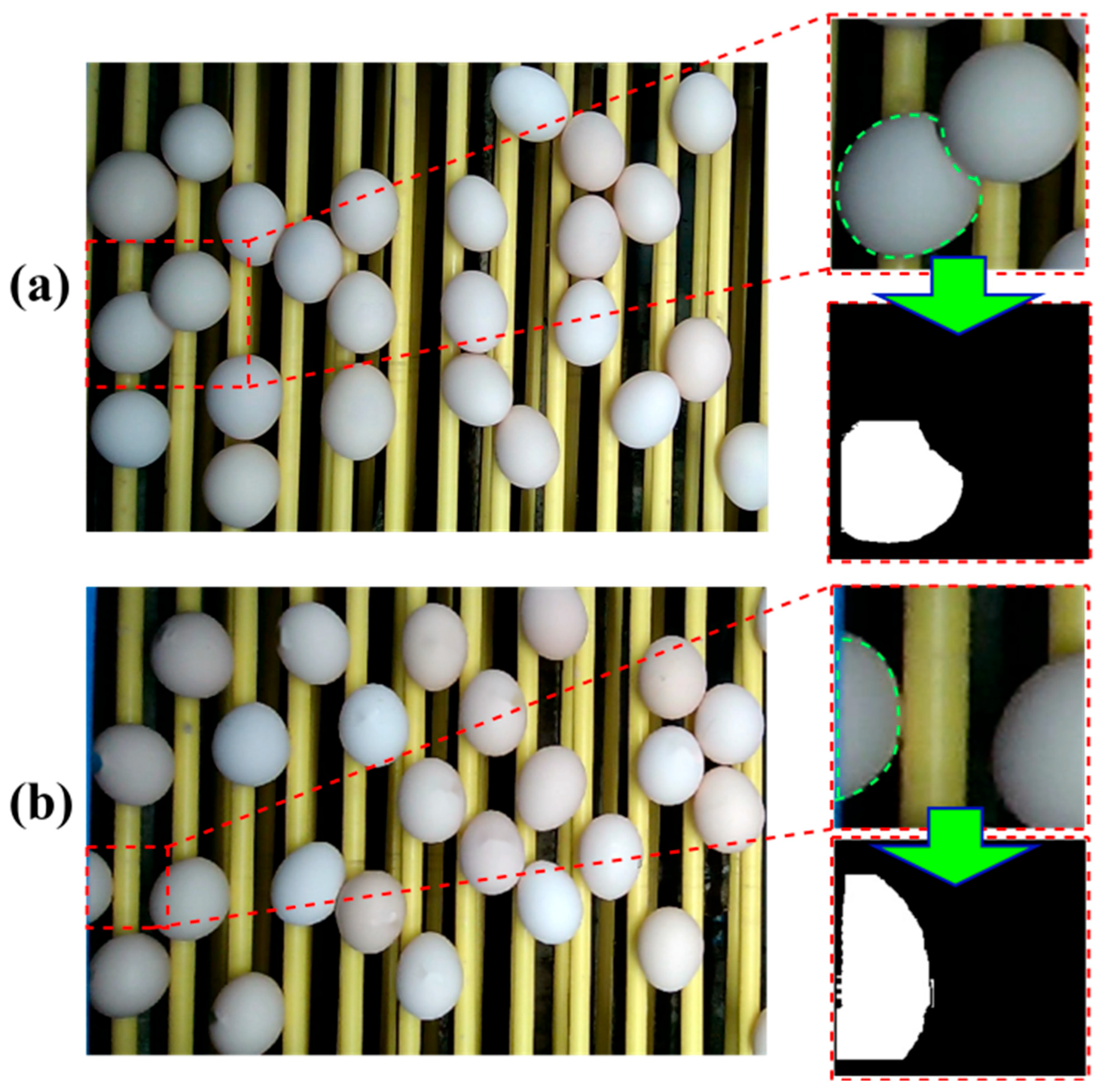 13], leading to inaccurate contour segmentation of eggs with varying quality. Although these inaccuracies may be negligible for generic object detection, they prove particularly detrimental to our framework, where subpixel-level mask precision is paramount for weight prediction. Due to the above difficulties, the current vision-based egg-weighing method remains in the laboratory scenario stage, largely inconsistent with the actual production scenario (as shown in