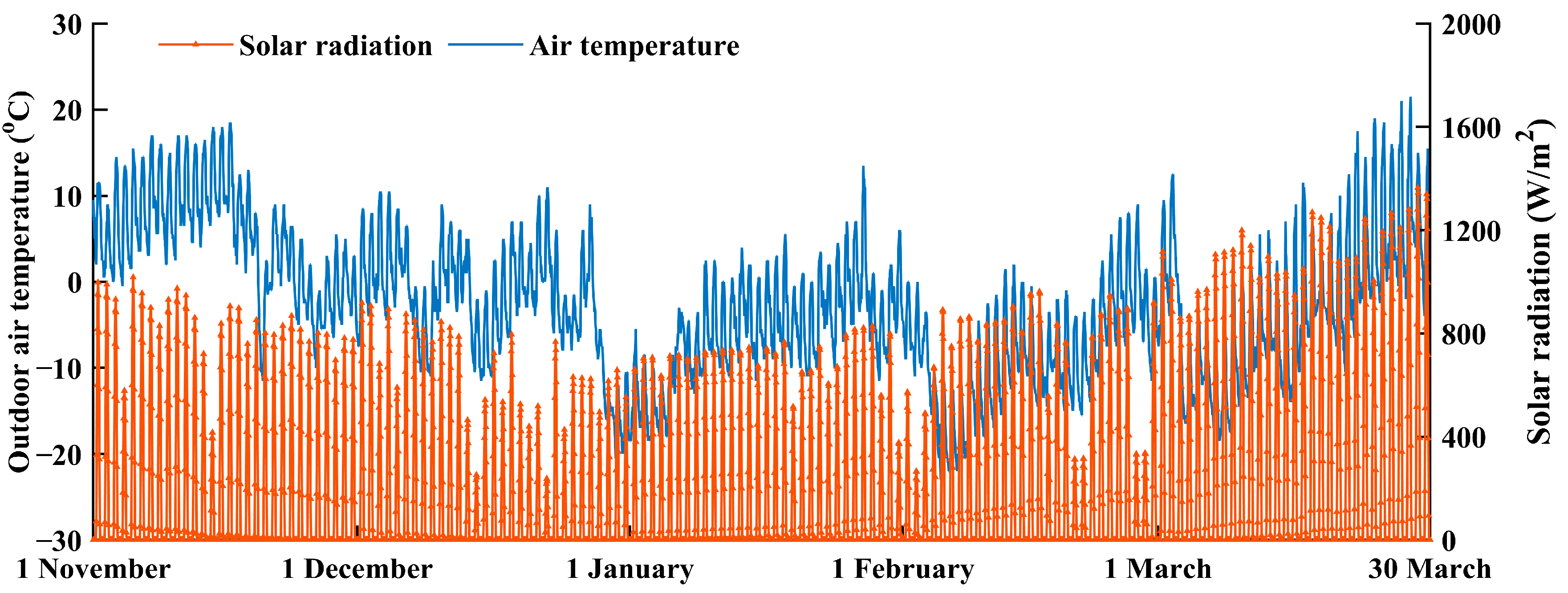- Mao, E.; Zhang, X.; Xie, J.; Ma, N.; Chang, Y.; Hu, S. Simulation of thermal processes and optimization of parameters for active heat storage and discharge system in solar greenhouse. Acta Agric. Zhejiangensis 2024, 36, 671–680. [Google Scholar]