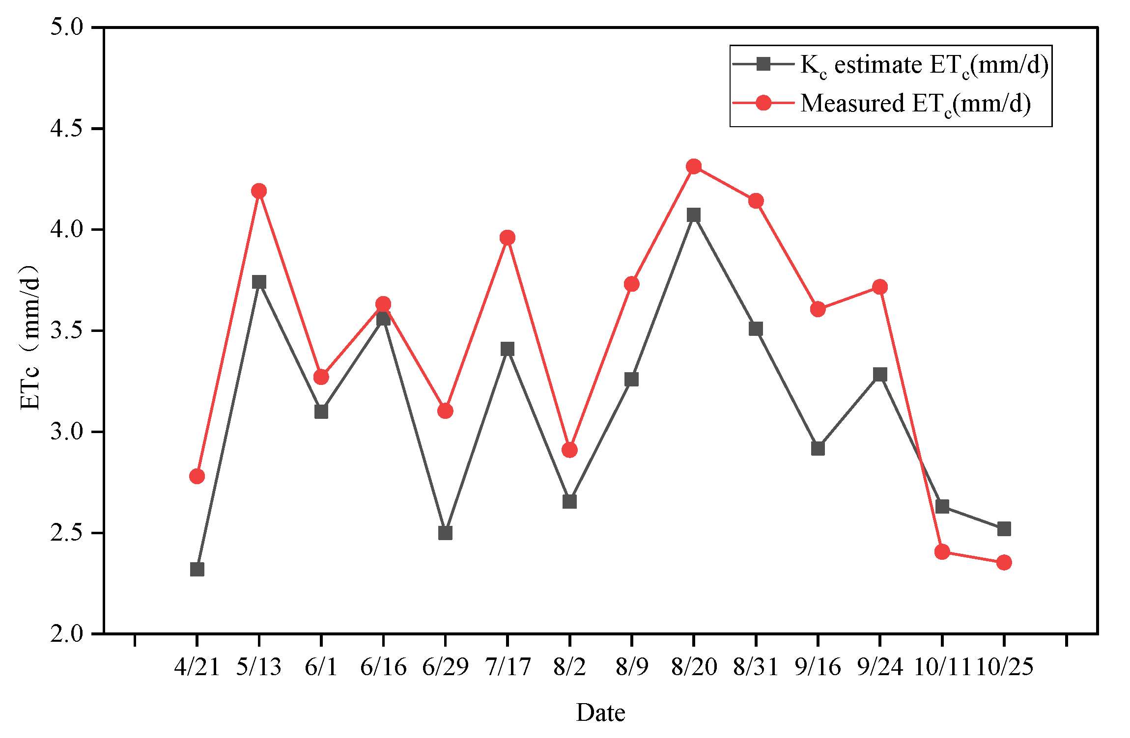 ETc peaking at 4.07 mm. Conversely, on 29 June and 2 August, due to prior rainfall, lower temperatures, and reduced sunshine duration,