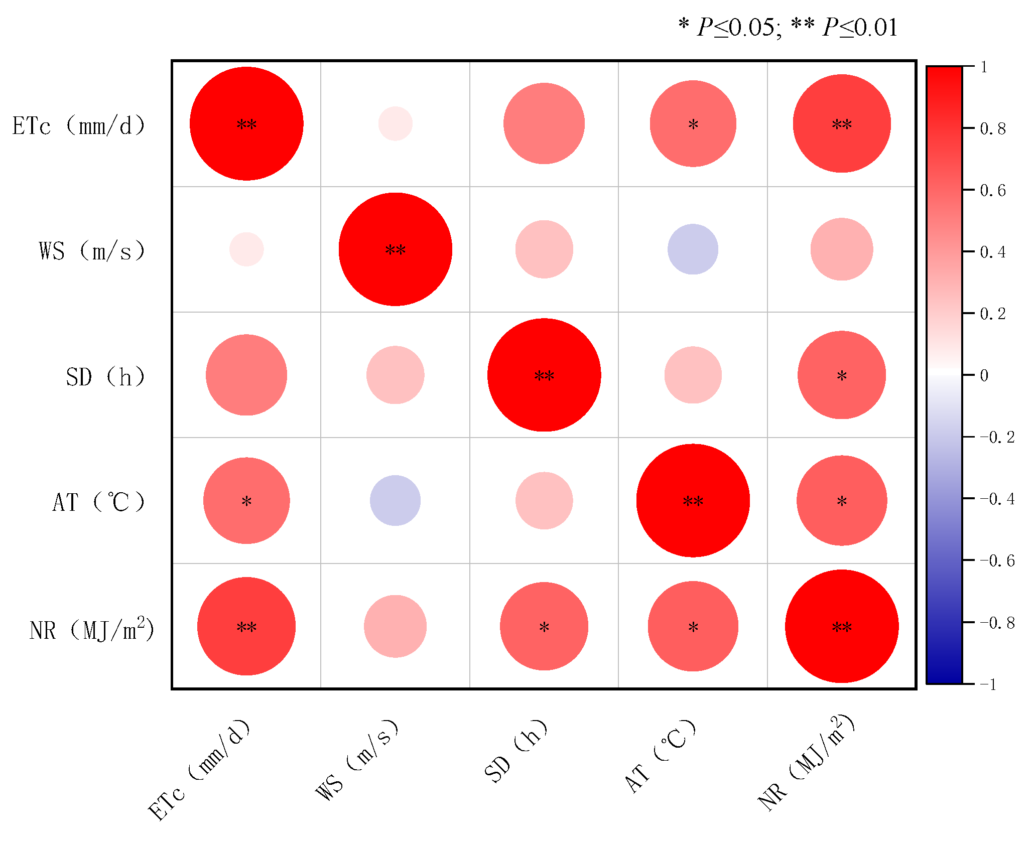 p < 0.01), while the effects of air temperature and sunshine duration are smaller compared to net radiation (R