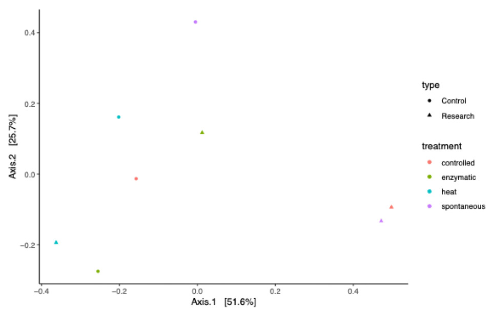 | Control | Thermal | Enzymatic | Spontaneous Fermentation | Controlled Fermentation | |