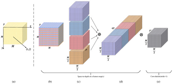 In this study, is selected, meaning that a four-way slicing operation is performed on the input feature map (Equations (3) and (4)).