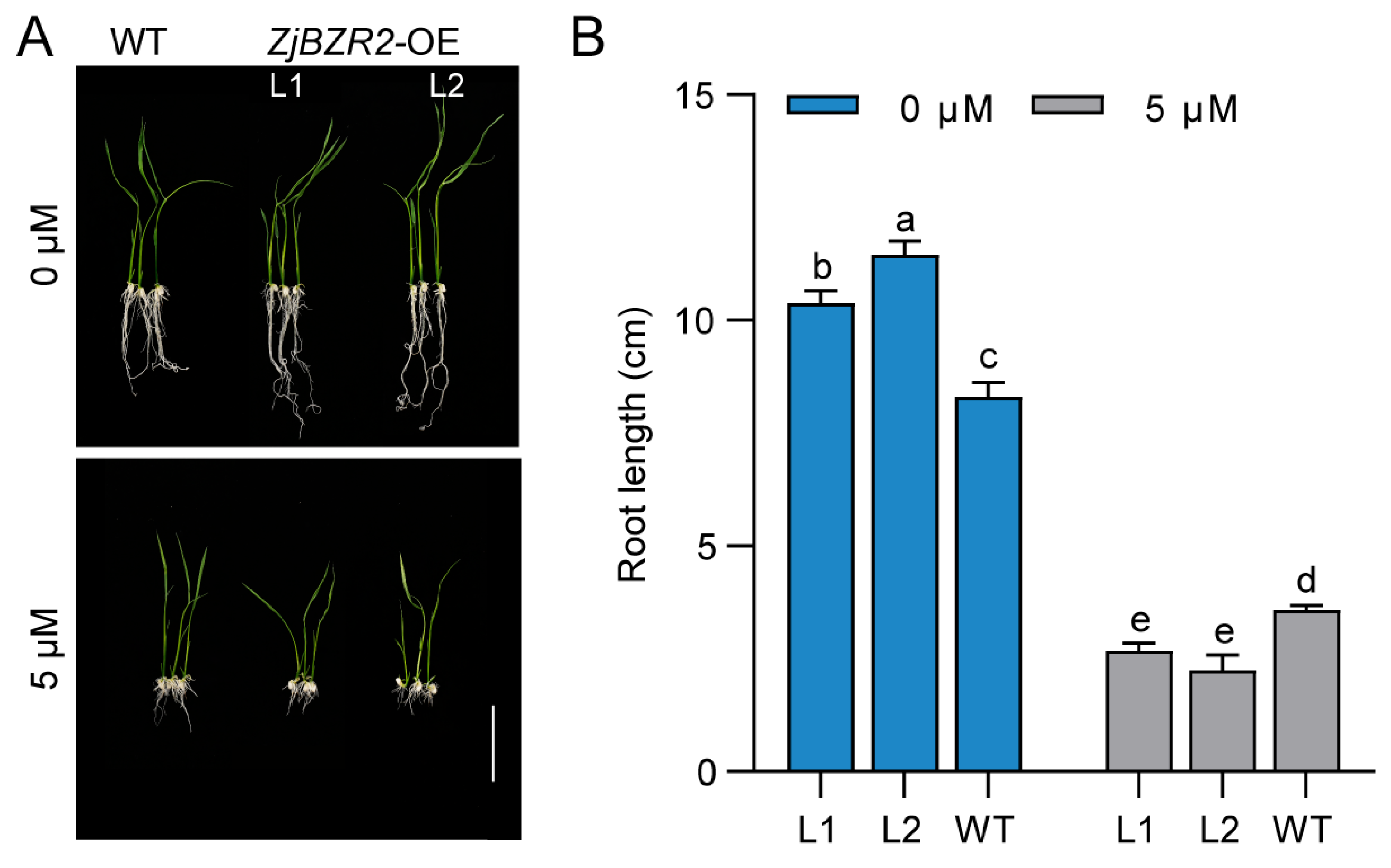 3.5. The Function of ZjBZR2 in the BR Signaling Pathway