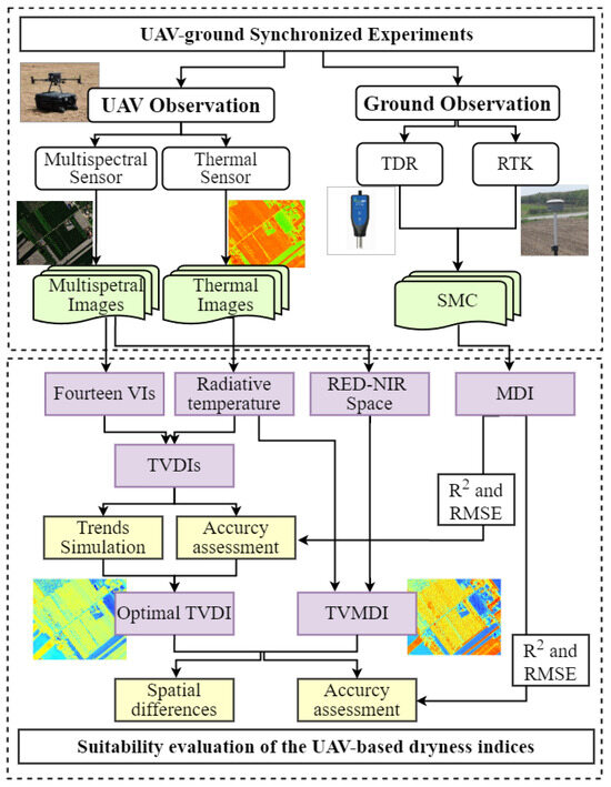 The workflow for evaluating UAV-based dryness indices for dryness monitoring.