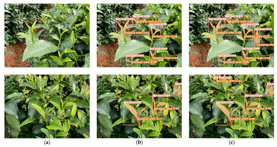 Figure 17 shows the detection and segmentation results of the tea buds and plucking areas achieved using the original and improved YOLOv8-seg model. The figure demonstrates that the improved method exhibited superior recognition and segmentation capabilities.