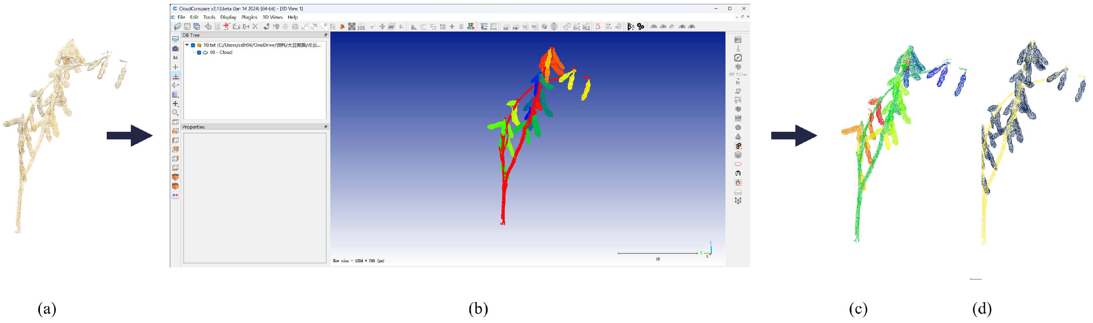 - Ziamtsov, I.; Navlakha, S. Plant 3D (P3D): A Plant Phenotyping Toolkit for 3D Point Clouds. Bioinformatics 2020, 36, 3949–3950. [Google Scholar] [CrossRef] [PubMed]