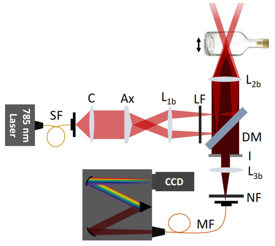 Raman spectrum device diagram of a sample in a glass bottle collected by ISORS.