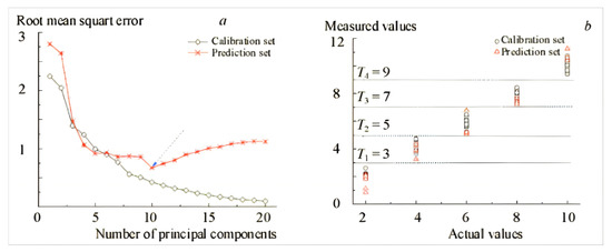 SPA is a feature extraction algorithm based on forward iterative search, where in each iteration, the wavelength with the maximum projection value is selected as the new variable until the number of selected variables reaches the predefined value [69]. The SPA algorithm performs well in handling large datasets and reducing redundant information. However, as it performs only a single-layer projection, it is insufficient for optimizing the model’s prediction performance.