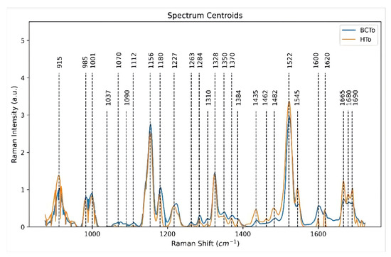 - Campos, M.T.; Maia, L.F.; Dos Santos, H.F.; Edwards, H.G.; Oliveira, L.F. Revealing the chemical synergism in coloring tomatoes by Raman spectroscopy. J. Raman Spectrosc. 2023, 54, 1314–1326. [Google Scholar] [CrossRef]