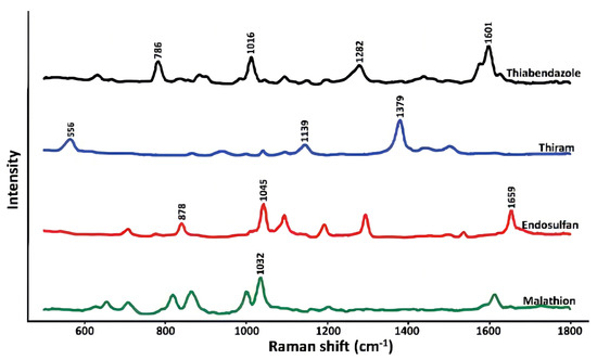 - Chen, J.; Huang, Y.; Kannan, P.; Zhang, L.; Lin, Z.; Zhang, J.; Chen, T.; Guo, L. Flexible and adhesive surface enhance Raman scattering active tape for rapid detection of pesticide residues in fruits and vegetables. Anal. Chem. 2016, 88, 2149–2155. [Google Scholar] [CrossRef] [PubMed]