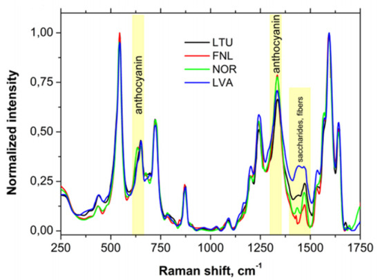 - Traksele, L.; Snitka, V. Surface-enhanced Raman spectroscopy for the characterization of Vaccinium myrtillus L. bilberries of the Baltic–Nordic regions. Eur. Food Res. Technol. 2022, 248, 427–435. [Google Scholar] [CrossRef]