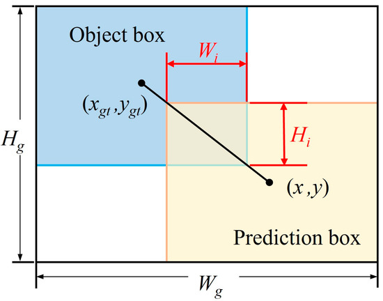 where w and h represent the width and height of the predicted bounding box, respectively; wgt and hgt represent the width and height of the ground truth object bounding box; Wi and Hi represent the width and height of the intersection area between the ground truth and the predicted bounding boxes.