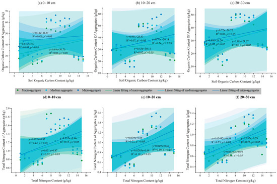 3.4. Relationship Between Organic Carbon and TN Content in Different Aggregates and Bulk Soil
