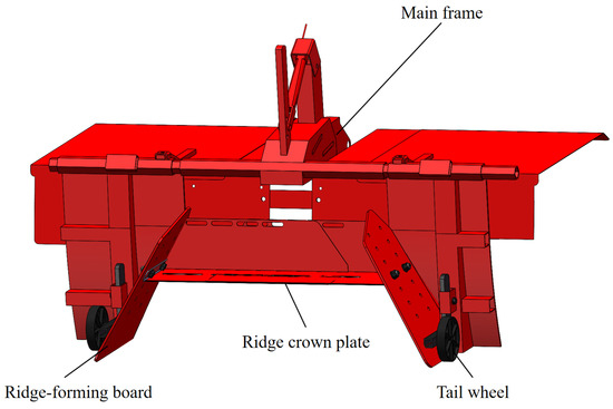 In recent years, the integration of multifunctional capabilities and structural lightweighting of mechanical equipment has become a significant trend in greenhouse environments [7]. For example, integrated ridging–mulching–drip irrigation machines and multifunctional ridging–disinfection devices have been proposed, showing that combining multiple processes in a compact space can significantly improve efficiency and adaptability [8,9]. These advancements highlight the research frontier of multifunctional greenhouse machinery. Within this context, the ridging and mulching machine developed in this study represents an innovative exploration aimed at meeting the unique demands of yellow sand substrates.