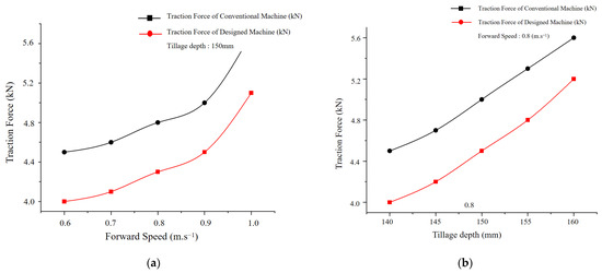 - Field trials confirmed the outstanding performance of the ridge-forming and mulching machine. The measured ridge top width, ridge base width, ridge height, ridge spacing, and plastic film edge width were 598.6 mm, 802.3 mm, 202.4 mm, 1002.8 mm, and 75.2 mm, respectively, with ridge dimension stability coefficients all exceeding 93.7%. This study estimates the traction energy using power consumption and effective field capacity (EFC), and provides an initial estimation of the traction force and operational efficiency for both the designed and conventional machines. Through comparative analysis, the advantages of the designed machine in reducing traction force and improving operational efficiency have been demonstrated. Future experiments will further validate the accuracy of these estimations through traction sensors and energy efficiency measurements under real-world operating conditions, providing additional data support for the practical application of the designed machine. The substrate firmness reached 152.1 kPa. All parameters met the agronomic requirements for tomato ridge formation. The proposed design effectively improved operational efficiency, enhanced tomato yield and quality, ensured efficient resource utilization, and contributed to environmental protection and sustainable agricultural development.