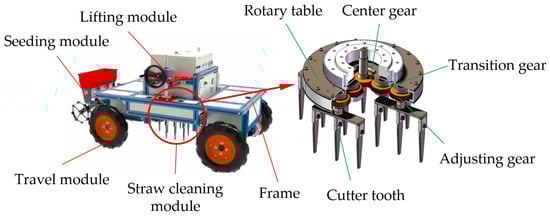 In order to tackle the worldwide issues of soil degradation and promote sustainable agricultural development, conservation tillage practices, encompassing no-till, reduced tillage, and straw mulching, have emerged as a pivotal approach in sustainable agriculture [1,2]. This technique entails the application of crop residue as a protective layer over the soil surface, significantly mitigating the impacts of both wind and water erosion, enhancing the concentration of organic matter within the soil, and enhancing the soil’s moisture content and thermal properties [3,4]. While a substantial layer of surface straw offers protective benefits to the soil, it simultaneously presents considerable challenges for planting activities; this frequently results in mechanical obstructions and inadequate contact between the seeds and the soil [5]. As a critical element of the conservation tillage system, the operational performance of no-till seeders significantly influences the effective adoption and widespread implementation of this technology. In the process of no-till seeding, it is imperative to achieve optimal seed-to-soil contact and to ensure the proper functioning of the seeding machinery. This requires the localized and temporary clearing of a clean sowing strip on the seeding belt [6,7]. Accordingly, the straw cleaning apparatus must demonstrate the capacity to remove straw efficiently. Excessive tillage can negatively impact soil structure, thereby compromising the goals of conservation tillage [8]. Thus, achieving a balance between effective straw removal and the minimization of soil disturbance has become a critical challenge in the development of conservation tillage technologies [9].