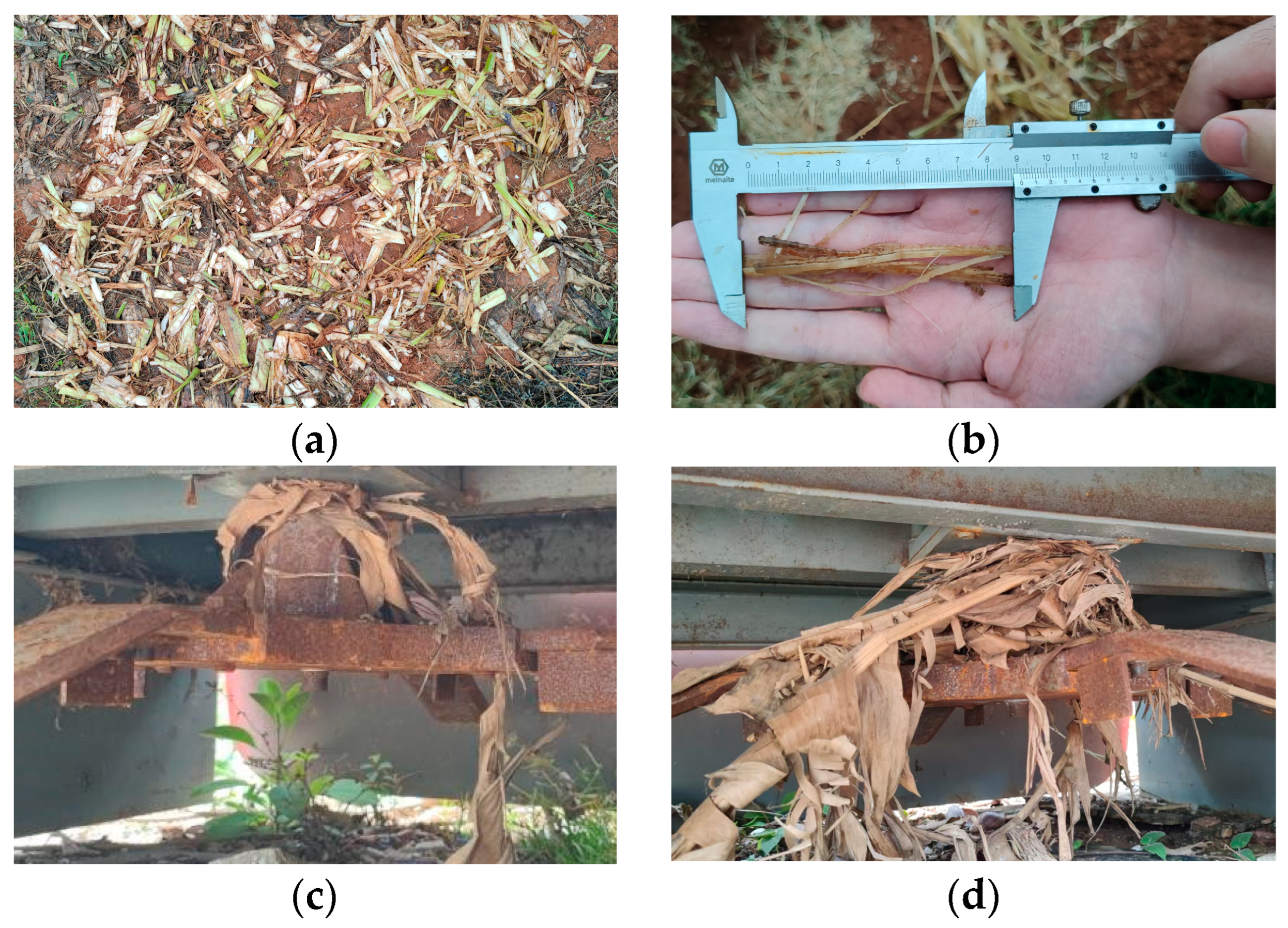 - Wu, Z.H. Optimal Design and Test of Double Shafts Banana Straw Crushing and Returning Machine with Different Rotational Directions. Master’s Thesis, Hainan University, Haikou, China, 2023. [Google Scholar] [CrossRef]