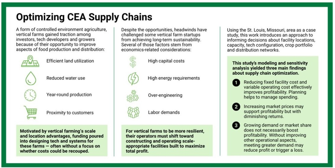 A model equipped to offer insights about scale-appropriate sizing and cost control is important because farming vertically does increase costs, including those for energy and labor [