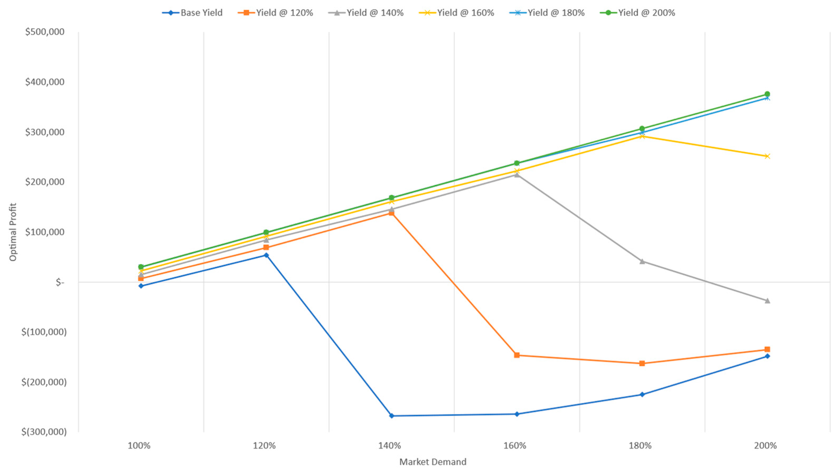 Table 8 shows estimated yields for crops considered in this case study. N/A indicates a crop is usually not grown in a configuration.