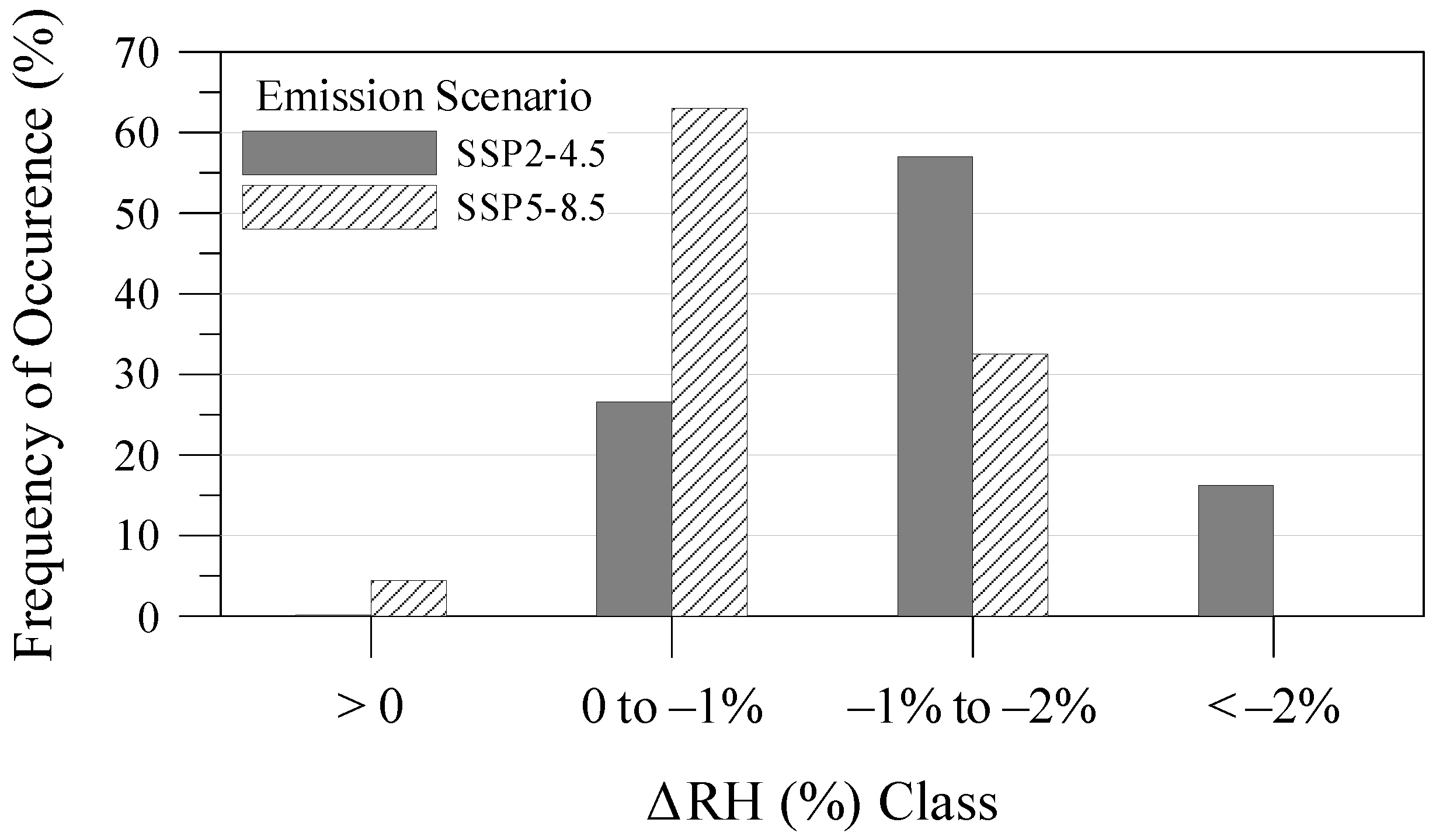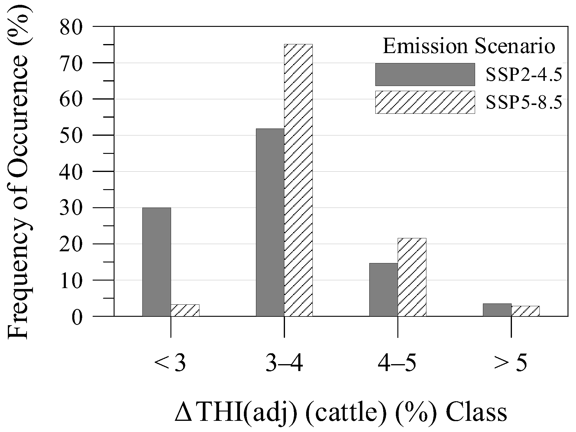 Moderate heat-stress | Increase of up to 40% in 78% (SSP2-4.5) and 84% (SSP5-8.5) of cases |