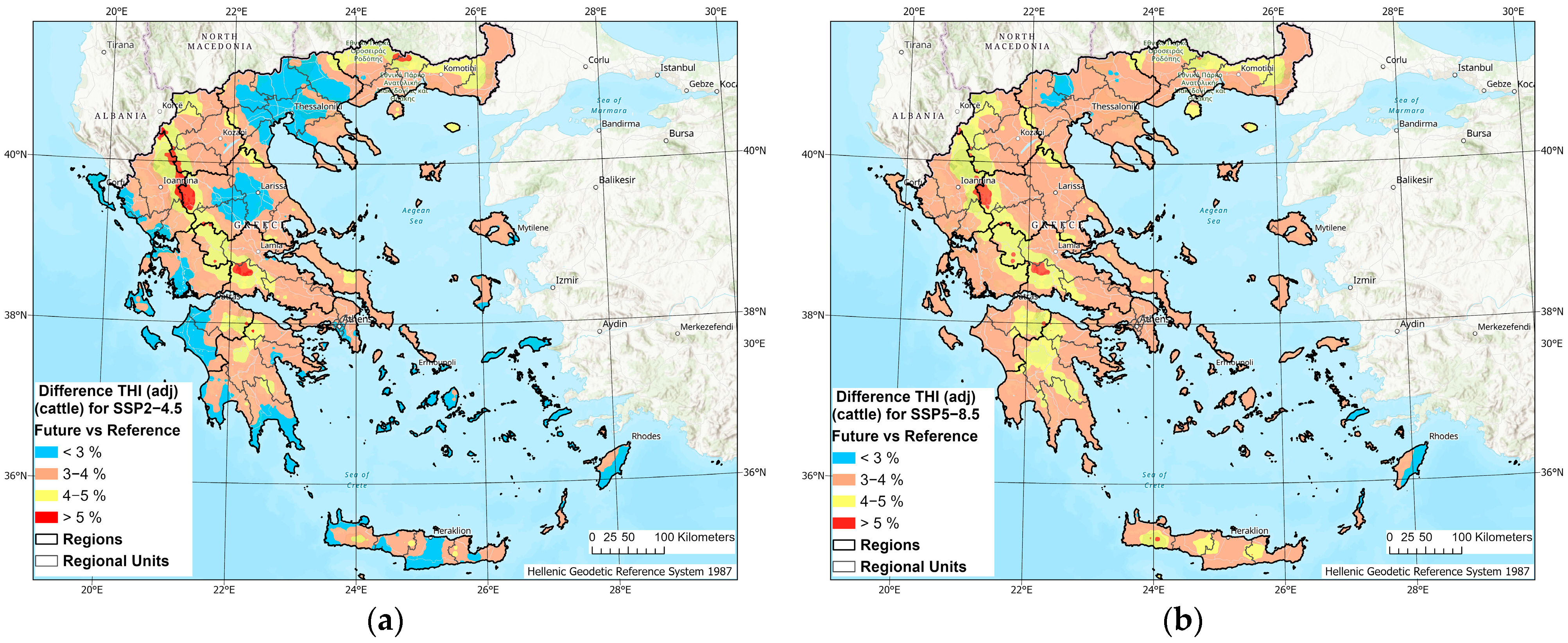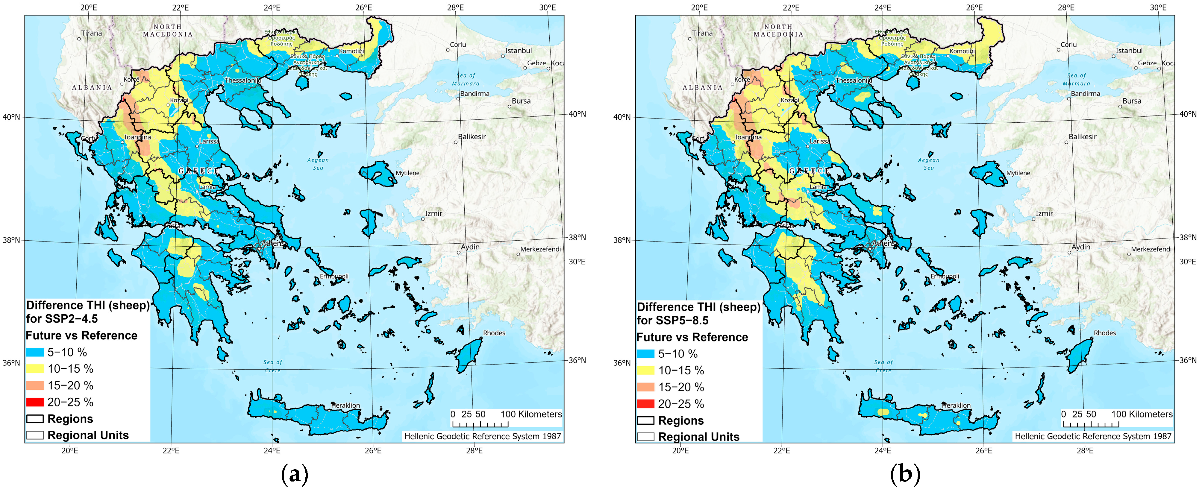 Papanastasiou, D.K.; Gelasakis, A.I.; Papadopoulos, G.; Melas, D.; Douvis, K.; Faraslis, I.; Keppas, S.; Stergiou, I.; Poupkou, A.; Voloudakis, D.; et al. Projected Heat-Stress in Sheep and Cattle in Greece Under Future Climate Change Scenarios. Agriculture 2025, 15, 2141. https://doi.org/10.3390/agriculture15202141